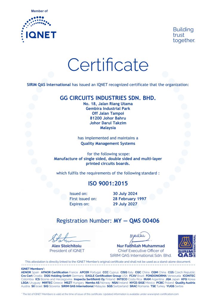 GG achievement in obtaining and maintaining the certificate of the quality systems are proof of the strength in management commitment and staff dedication in providing our superior Quality in products and services.
